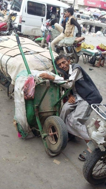نشر ناشطون في مواقع التواصل الإجتماعي صورة مثيرة للحزن و انسانية بامتياز لبائع يمني متجول في شوارع صنعاء وهو يبحث عن لقمة العيش لأسرته....