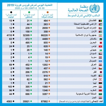نشرت منظمة الصحة العالمية عبر مكتبها الإقليمي لشرق المتوسط، التحديث اليومي ...