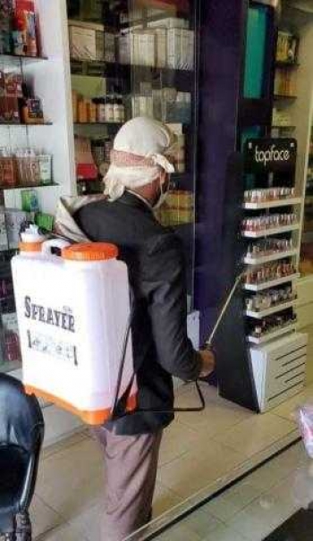 شاهد الصورة التي أثارت سخرية اليمنيين .. الحوثي والتعقيم...