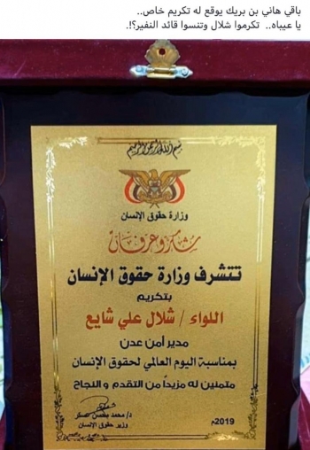 كرمت وزارة حقوق الانسان في الحكومة اليمنية ،المعترف بها دوليآ، اليوم الثلاثاء،مدير أمن عدن السابق، والقيادي البارز في المجلس...