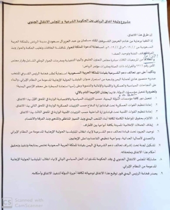 نصت وثيقة اتفاق الرياض التي تم التوقيع عليها بين الحكومة اليمنية والإنتقالي الجنوبي على البنود الآتية: