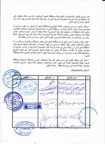 اعلن مشائخ ووجهاء ومرجعيات «تمائم» قبائل محافظة المهرة كافة، اليوم، رفضهم واستنكارهم لإشهار ما يسمى «بمجلس الإنقاذ الجنوبي» أو اشهار...