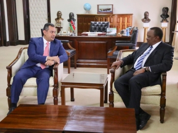 استقبل الرئيس الكيني اوهورو كينياتا رئيس مجلس الوزراء الدكتور معين عبدالملك سعيد في القصر الرئاسي بالعاصمة نيروبي، وفي بداية اللقاء...