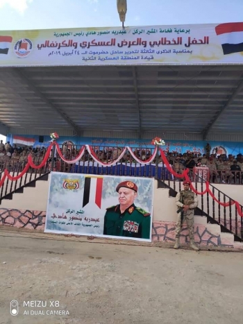 صادم لأنصار هذا التيار شاهد صورة القائد الكبير الذي رفعها جنود النخبة الحضرمية خلال عرضهم العسكري
