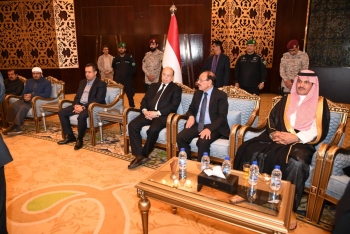 ستقبل فخامة الرئيس عبدربه منصور هادي رئيس الجمهورية ومعه نائبه الفريق الركن علي محسن صالح ورئيس الوزراء الدكتور معين عبدالملك، صباح...
