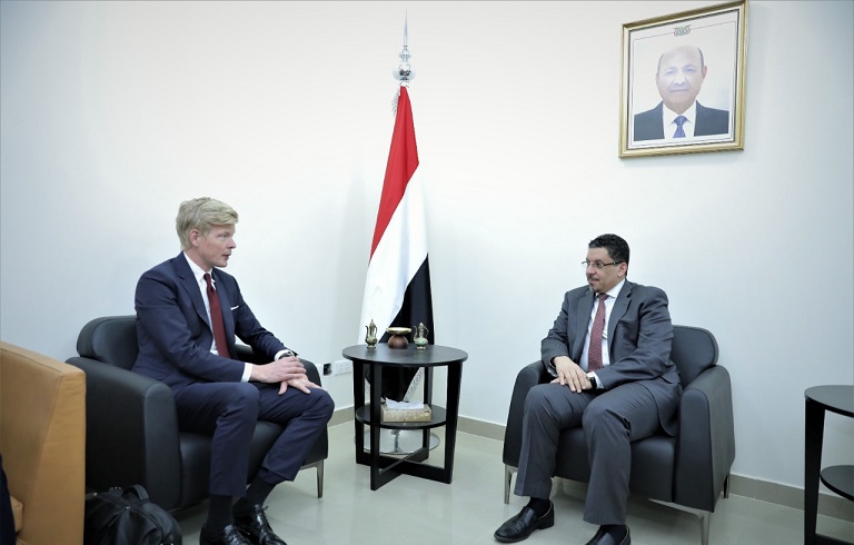 بحث وزير الخارجية وشؤون المغتربين الدكتور أحمد عوض بن مبارك، اليوم، مع المبعوث الخاص للأمين العام للأمم المتحدة الى اليمن هانس غروندبرغ، مجمل التطورات على الساحة اليمنية وسبل المحافظة على الهدنة بمساراتها المختلفة وبصورة خاصة فتح طرق مدينة تعز المحاصرة.