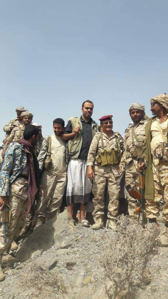 جاء ذلك خلال لقاءه مع القائد الميداني قائد كيتبة التعزيز الرائد نايف الصيادي،ونائب رئيس عمليات اللواء. العقيد محمد الحائر حيث قال "إننا سنقاتل الإنقلابين أينما كانو"وأضاف أجهة يحاولون الحوثيون الدخول منها سيجدوننا أمامهم"