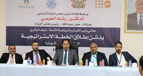 برعاية فخامة رئيس مجلس القيادة الرئاسي الدكتور رشاد العليمي ودولة رئيس الوزراء د. معين عبدالملك دشن معالي وزير الشباب والرياضة نايف صالح البكري ، اليوم، في ديوان عام الوزارة بالعاصمة المؤقتة عدن، انطلاق العمل بالخطة الاستراتيجية لتطوير قطاع الشباب، التي تنفذها الوزارة بالشراكة مع منظمة شباب بلا حدود للتنمية، بتمويل صندوق الأمم المتحدة للسكان.