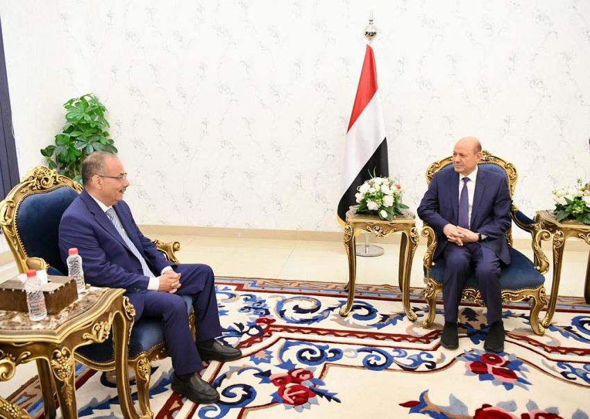 استقبل الرئيس الدكتور رشاد محمد العليمي رئيس مجلس القيادة الرئاسي، اليوم، الامين العام لغرفة التجارة والصناعة العربية-الالمانية، عبدالعزيز المخلافي الذي يزور العاصمة المؤقتة عدن لاستطلاع آفاق التعاون والعمل المشترك مع الشركات الالمانية في اليمن.