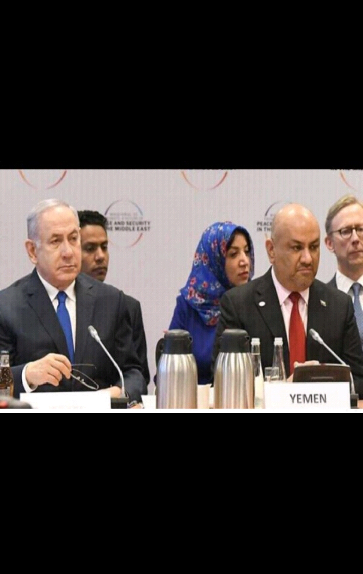 ونشر مكتب نتنياهو صورة لانطلاق مؤتمر «السلام والامن في الشرق الأوسط»، الأربعاء، في العاصمة البولندية، وارسو، ظهر فيها نتنياهو على طاولة تواجد عليها أيضا وزراء خارجية عرب، على رأس الطاولة برز نتنياهو وإلى جانبه وزير الخارجية اليمني خالد اليماني ووزير الخارجية الأمريكي مايك بومبيو.