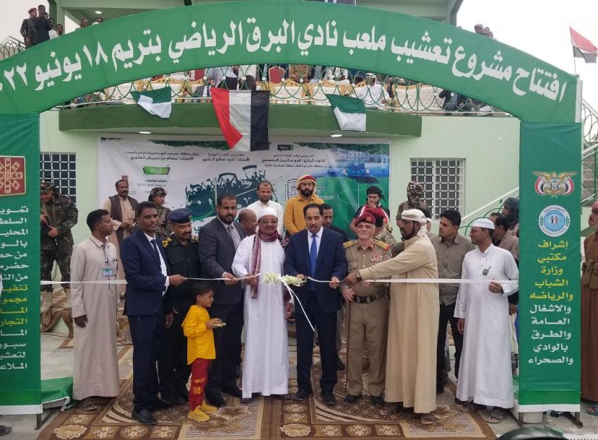 افتتح وزير الشباب والرياضة نايف البكري، اليوم ، ومعه وكيل محافظة حضرموت لشؤون مديريات الوادي والصحراء عصام الكثيري منشآت نادي البرق الرياضي بمديرية تريم ، الممول من حصة المحافظة من مبيعات النفط بكلفة اجمالية 435 ألف دولار.