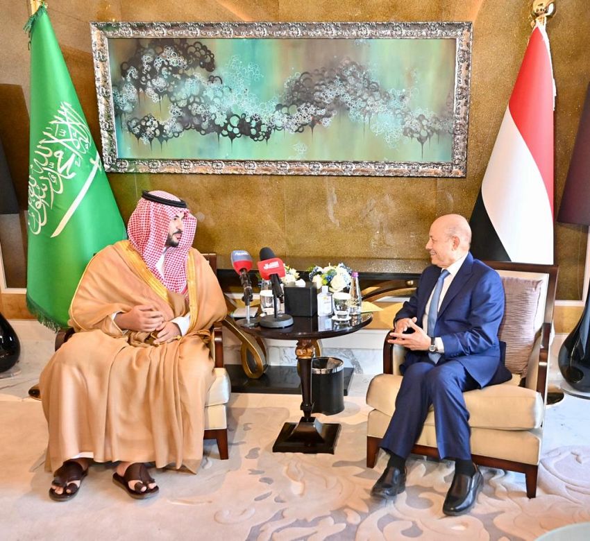 وفي اللقاء رحب رئيس مجلس القيادة الرئاسي، بنائب وزير الدفاع السعودي، واشاد بجهوده الحثيثة لإنفاذ التوجيهات الملكية الكريمة لإحلال السلام والاستقرار في اليمن، وتخفيف معاناة الشعب اليمني، وتحقيق تطلعاته في استعادة مؤسسات الدولة وانهاء انقلاب المليشيات الحوثية المدعومة من النظام الايراني.