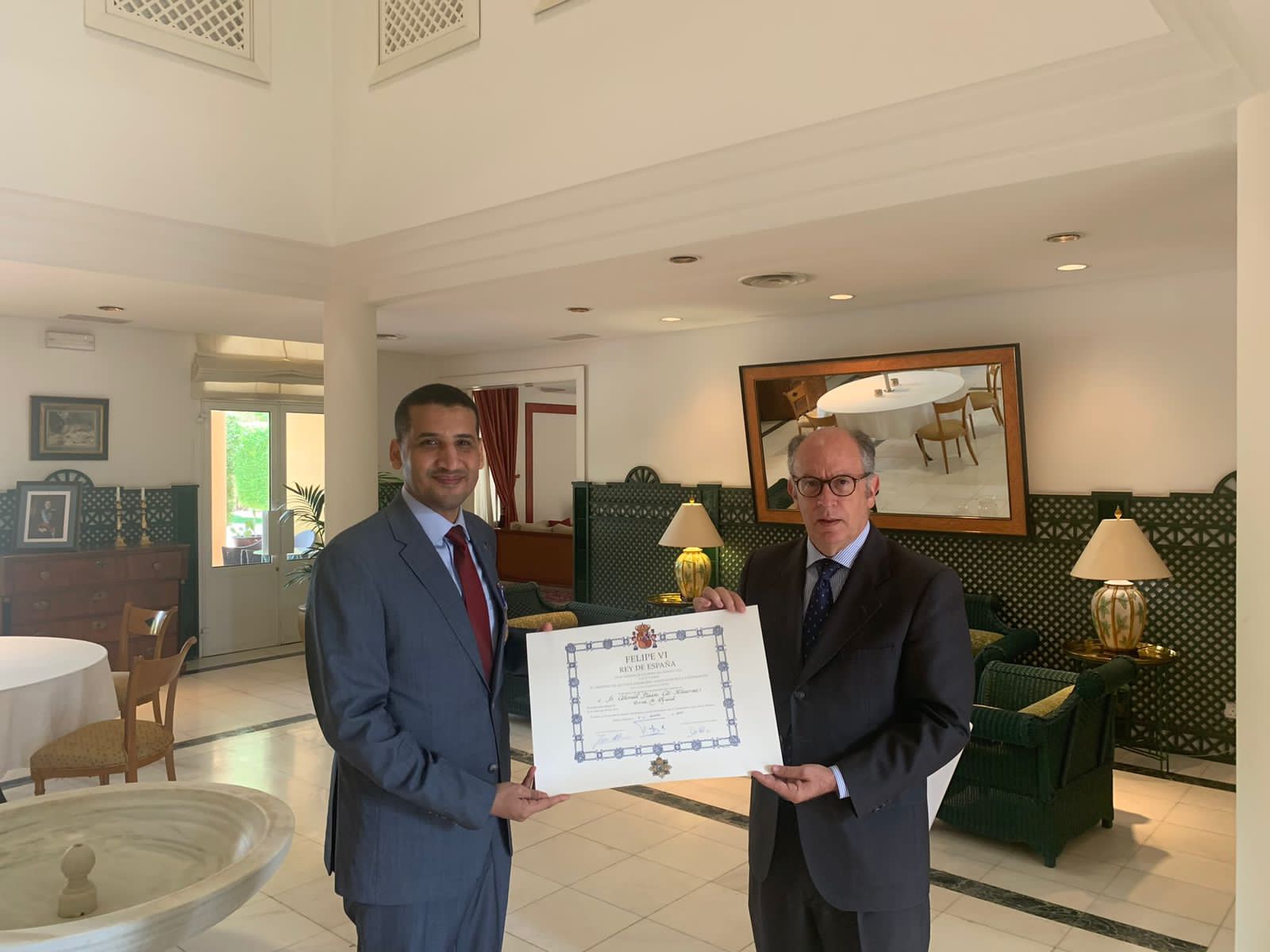 كرم ملك مملكة اسبانيا فيليبي السادس الرئيس التنفيذي لجمعية الصداقة الاسبانية اليمنية السيد أحمد ناصر الخراز وذلك على جهوده المبذولة في إطار تطوير العلاقات الثنائية بين اسبانيا واليمن.