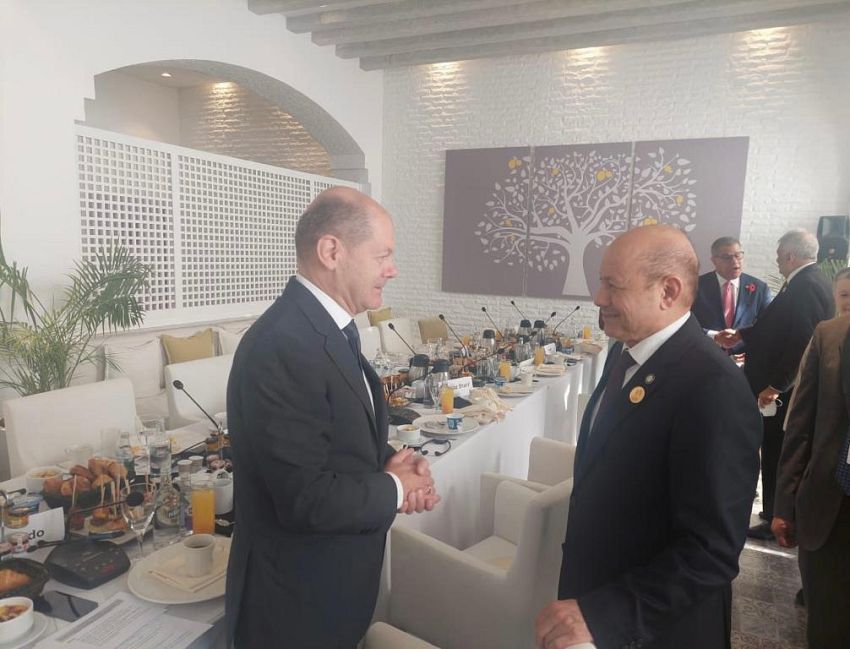 شارك الرئيس الدكتور رشاد محمد العليمي، رئيس مجلس القيادة الرئاسي، اليوم الثلاثاء، في جلسة العمل رفيعة المستوى التي رأسها المستشار الاتحادي الالماني اولاف شولتس وذلك بالتزامن مع قمة المناخ السابعة والعشرين التي انطلقت فعاليتها في مدينة شرم الشيخ المصرية امس الاثنين.