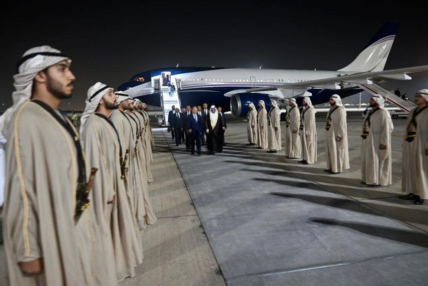 وحسب ما نشرته وكالة سبأ اليمنية للانباء فقد كان في استقبال فخامة الرئيس والوفد المرافق له، وزير العدل الاماراتي عبدالله النعيمي، وسفير اليمن لدى الامارات فهد المنهالي.
