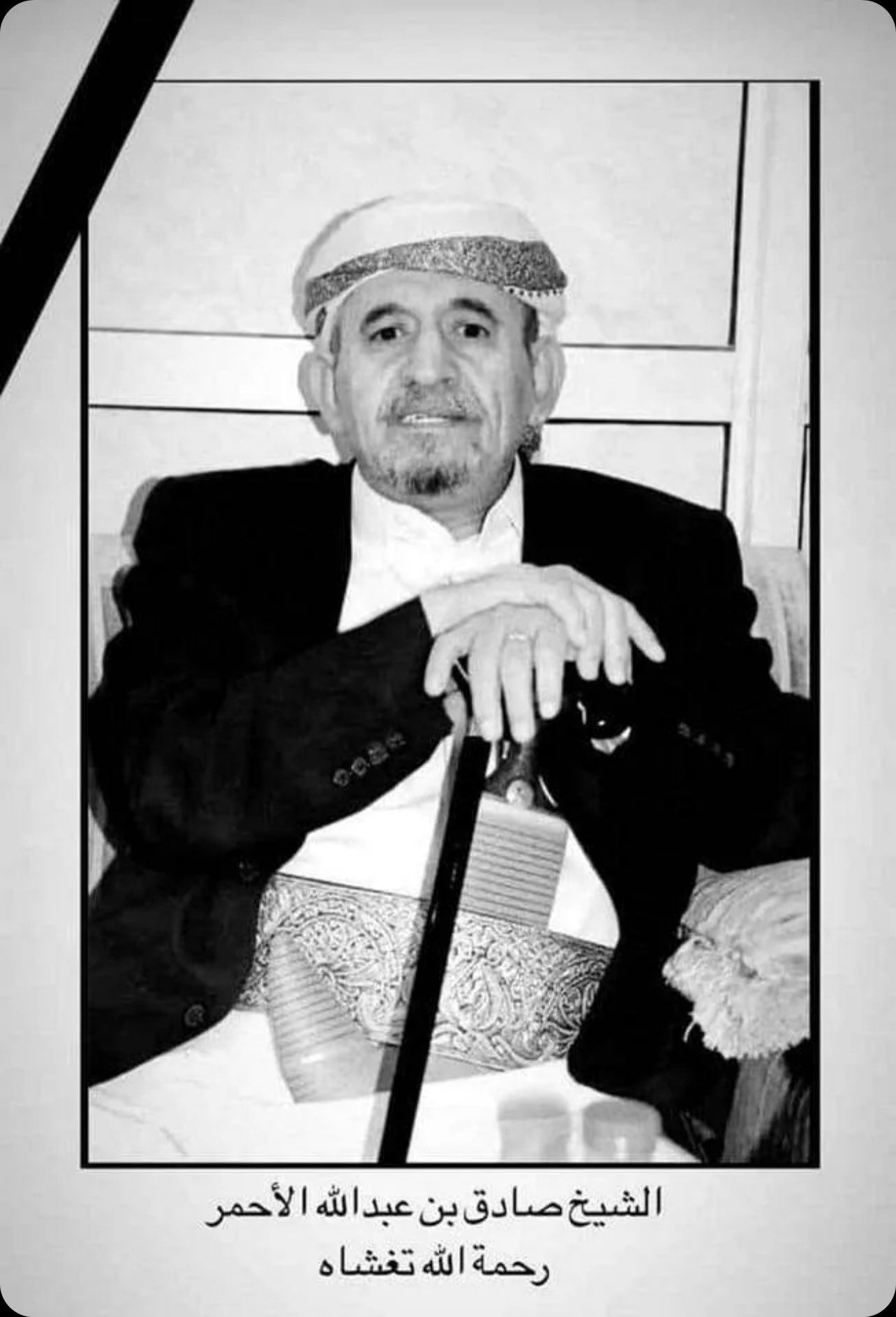 توفي، اليوم الجمعة، الشيخ صادق بن عبدالله بن حسين الأحمر، في العاصمة الأردنية عمّان بعد معاناة مع المرض.