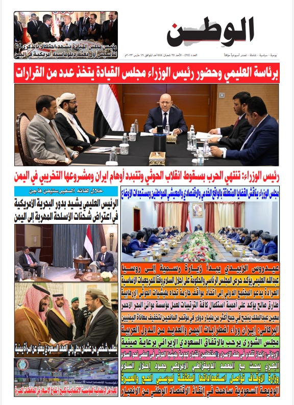 آخر الاخبار والمستجدات تجدونها في صحيفة الوطن العدد 25 الصادر اليوم الأحد 27 شعبان 1444هـ الموافق 19 مارس 2023م