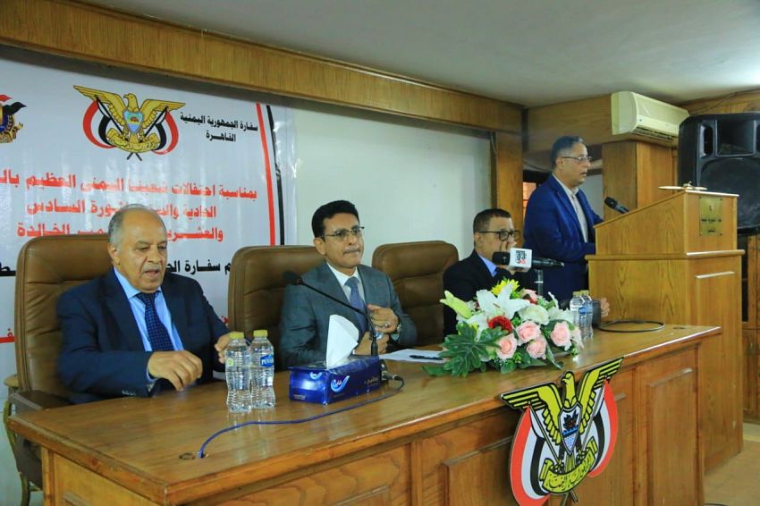 نظمت سفارة الجمهورية اليمنية لدى القاهرة، اليوم، حفلاً بمناسبة العيد الوطني الـ ٦١ لثورة الـ ٢٦ من سبتمبر الخالدة، بحضور عدد من مناضلي الثورة ورجالات الدولة السابقين وحشد لفيف من أبناء الجالية اليمنية في القاهرة.