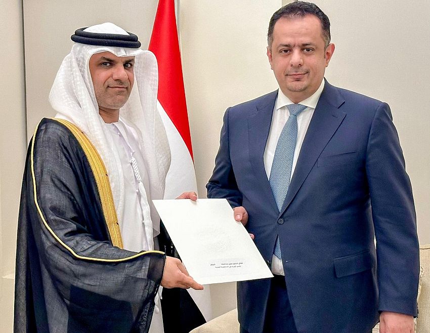 جاء ذلك خلال استقبال رئيس الوزراء سفير دولة الإمارات العربية المتحدة لدى اليمن، محمد الزعابي، الذي سلمه الرسالة، حيث جرى مناقشة مستجدات الأوضاع على الساحة الوطنية والجهود المستمرة لإحلال السلام في اليمن، وجوانب الدعم المطلوب لإسناد الحكومة في مواجهة التحديات القائمة، بما يخفف المعاناة الإنسانية للشعب اليمني والتي تسببت بها مليشيا الحوثي الإرهابية منذ انقلابها على السلطة واشعالها للحرب.
