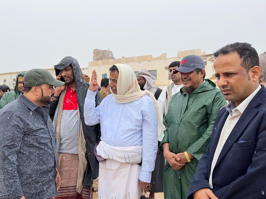 خلال جولتهما.. وزير الأشغال ومحافظ المهرة يتفقدان أضرار العاصفة المدارية "تيج" بمدينة الغيضة