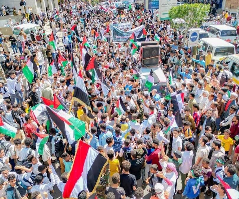 شهدت محافظة تعز، اليوم. خروج مسيرة شعبية حاشدة للتنديد بجرائم الاحتلال الصهيوني بحق ابناء الشعب الفلسطيني واستهداف الاحياء السكنية والمستشفيات وسقوط الاف من الشهداء والجرحى بينهم نساء واطفال.