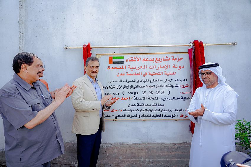 افتتح وزير الدولة، محافظ عدن أحمد لملس، اليوم الأربعاء، ومعه سفير دولة الإمارات العربية المتحدة الشقيقة لدى اليمن محمد الزعابي، مشاريع المرحلة الأولى لإعادة البنية التحتية للمؤسسة المحلية للمياه والصرف الصحي في عدن، ومركز شرطة البريقة.