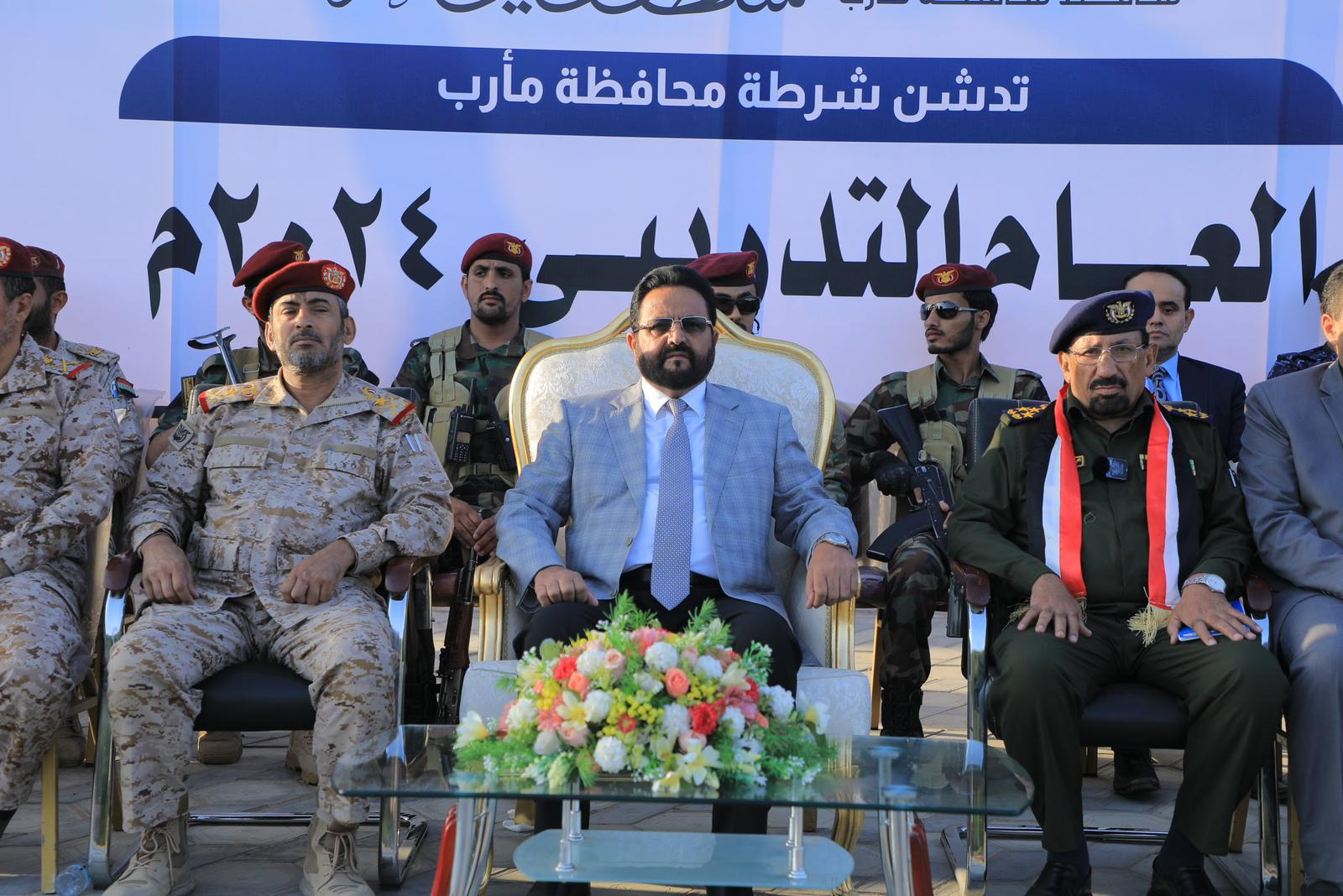 إلى ذلك شهد اليوم العرادة العرض العسكري والامني التي اقامته ادارة الأمن وشرطة المحافظة للعام 2024 موجها اكثر من رسالة اهمها أن مارب سوف تظل صامدة في وجه كل المشاريع الصغيرة وسوف تكون صمام امان للجمهورية. مؤكدا وحدة الصف في مواجهة الميليشيا الحوثية من جميع ابناء محافظة مارب وقبائلها وابنائها وكل ساكنيها.