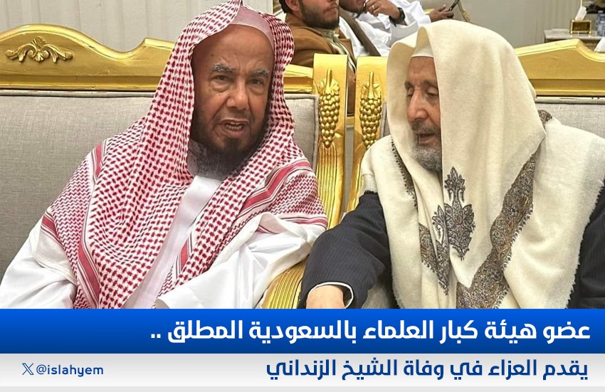 قدم المستشار في الديوان الملكي عضو هيئة كبار العلماء بالمملكة العربية السعودية، الدكتور عبدالله المطلق، العزاء في وفاة الشيخ عبدالمجيد بن عزيز الزنداني، رئيس هيئة علماء اليمن وعضو الهيئة العليا للتجمع اليمني للإصلاح، عضو مجلس الرئاسة الأسبق، الذي وافاه الأجل الاثنين الماضي.