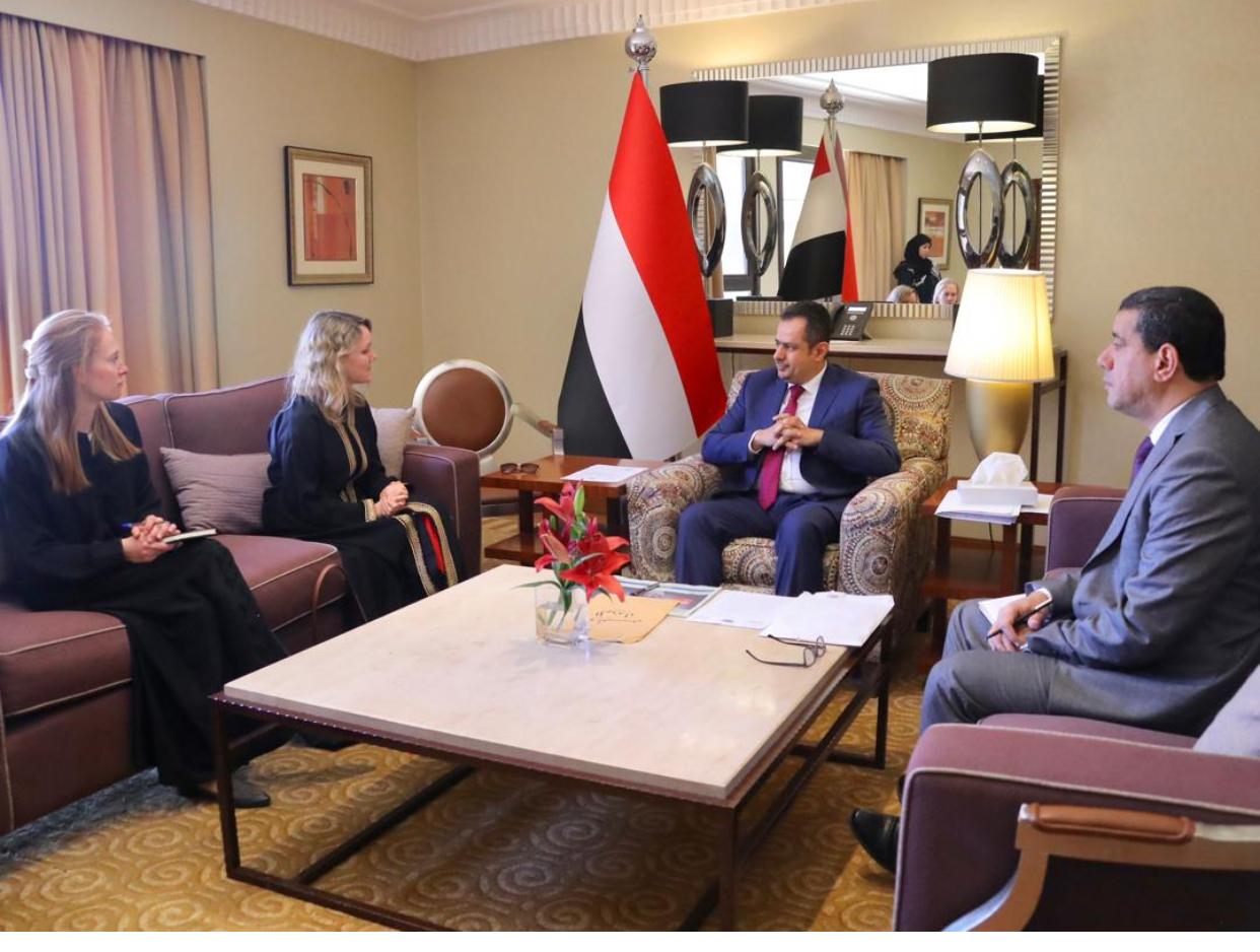 استقبل رئيس الوزراء الدكتور معين عبدالملك، اليوم الخميس، القائم باعمال السفارة البريطانية لدى اليمن، افيونا والكر دويل، لبحث التطورات السياسية والمستجدات في الجانب المالي والاقتصادي في اليمن.