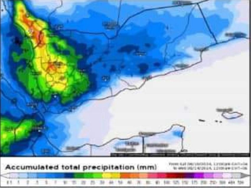 واشارت النشرة التحذيرية الصادرة عن المركز الى احتمال استمرار هطول أمطار رعدية غزيرة، بعضها مصحوبة بالبرد على المرتفعات والمنحدرات والسهول الساحلية الغربية، واستمرار هطول أمطار متفاوتة الشدة بعضها رعدية على أجزاء من صحاري ومرتفعات وهضاب وسواحل محافظات (المهرة، حضرموت، شبوة، أبين، البيضاء، الضالع ولحج)، وقد تمتد حتى محافظة عدن.