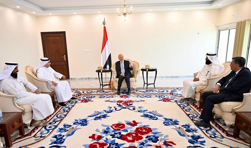 واستمع رئيس مجلس القيادة الرئاسي من الوفد الكويتي، الى احاطة موجزة حول نتائج زياراته الميدانية الى عدد من المحافظات، والتسهيلات المطلوبة لإنفاذ مشروعات الجمعية، بدءا بفتح مكتب دائم لها في عدن.