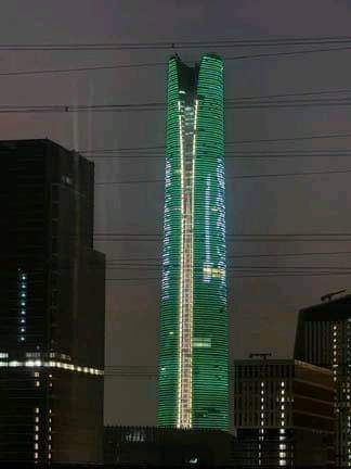 احتفالا باليوم الوطني السعودي أضاء جهاز العاصمة الإدارية بمصر، البرج الأيقوني بمنطقة الأعمال المركزية بعلم السعودية تأكيدا على العلاقة الوطيدة بين البلدين.