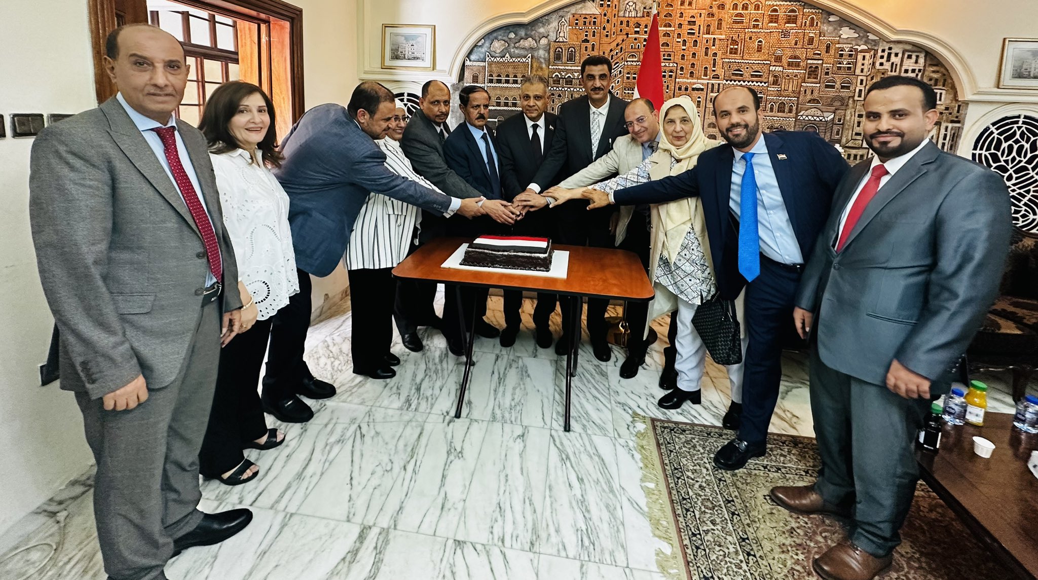 وفي الاحتفالية التي بدأت بالسلام الوطني الجمهوري ألقى السفير الدكتور جلال إبراهيم فقيرة كلمة عبر فيها عن اصدق التهاني والتبريكات الى القيادة السياسية ممثلة بفخامة الرئيس الدكتور رشاد العليمي رئيس مجلس القيادة الرئاسي، وكافة أعضاء المجلس، وإلى أبناء شعبنا اليمني بهذه المناسبة العظيمة.