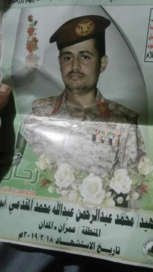 كتمت مليشيا الحوثي على خبر مقتل أركان حرب اللواء 127 مشاة ، العميد / محمد عبد الرحمن المقدمي أبو القاسم الذي قتل في معركة حجور بتاريخ 2019/2/18 أي ما يقارب الشهر و لم تعلن الميليشيات خبر مقتله الإ بعد إنكسار حجور كي لا تتأثر معنويات عناصرهم . هذا وقد دعت الميليشيات إلى تشييع رسمي للعميد المقدمي صباح السبت 16 مارس 2019 الساعة التاسعة صباحاً وقد حددت مكان التشييع بالعاصمة صنعاء منطقة العرضي قيادة مديرية المدان .