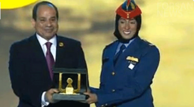 الرئيس المصري عبدالفتاح السيسي يكرم المقاتلة الاماراتية مريم المنصوري