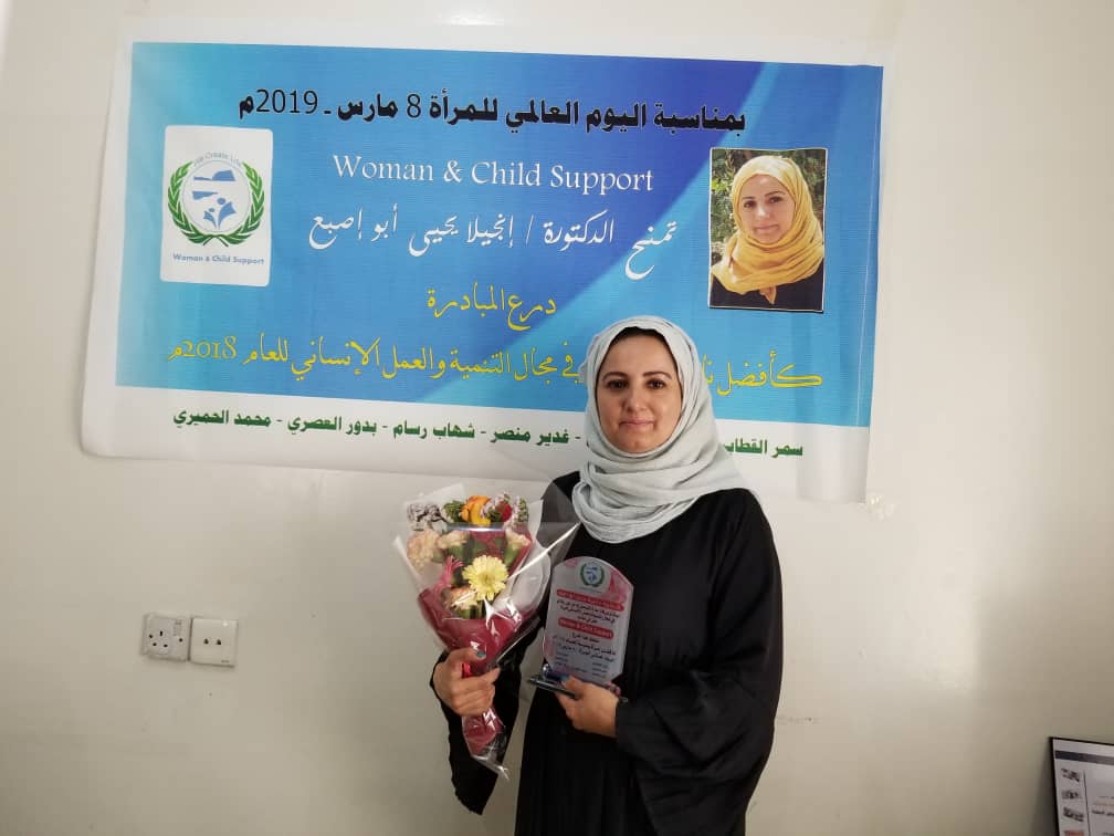 منحت مبادرة Woman & Child Support «دعم المراة والطفل» الدكتورة/ أنجيلا إبو إصبع درع المبادرة كأفضل إمرإة يمنية في مجال التنمية والعمل الإنساني للعام 2018 م.