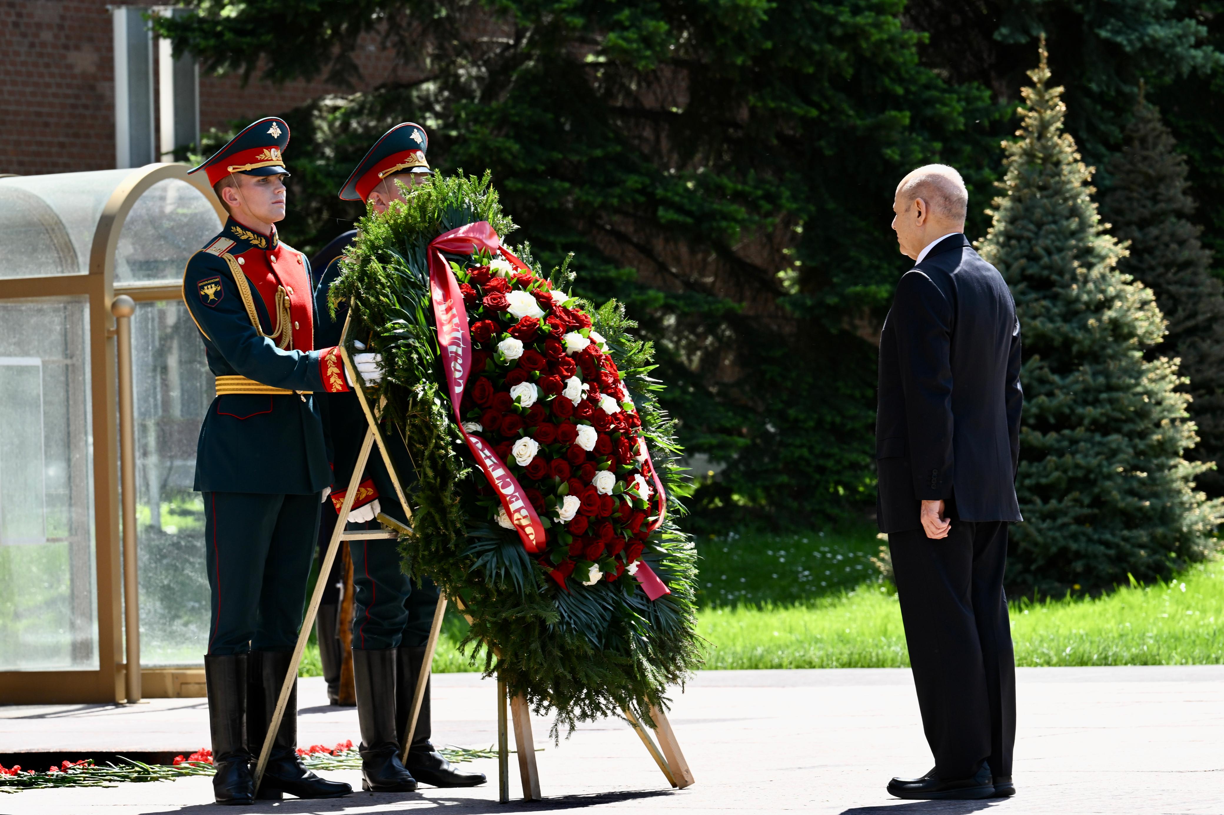 قام الرئيس الدكتور رشاد محمد العليمي رئيس مجلس القيادة الرئاسي اليوم الاربعاء، في اطار زيارته الرسمية الى روسيا الاتحادية، بوضع إكليل الزهور على ضريح الجندي المجهول عند جدار الكرملين في حديقة الكسندر بالساحة الحمراء في العاصمة الروسية موسكو.