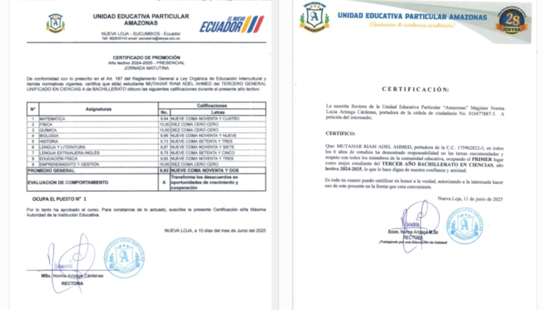 في انجازا لافتا نظرا للتحديات التي واجهتها حققت الطالبة اليمنية، رئام عادل أحمد محمد مطهرالخالدي المركز الأول في امتحانات الثانوية العامة في دولة الإكوادور بمعدل متميز بلغ 99.2%.