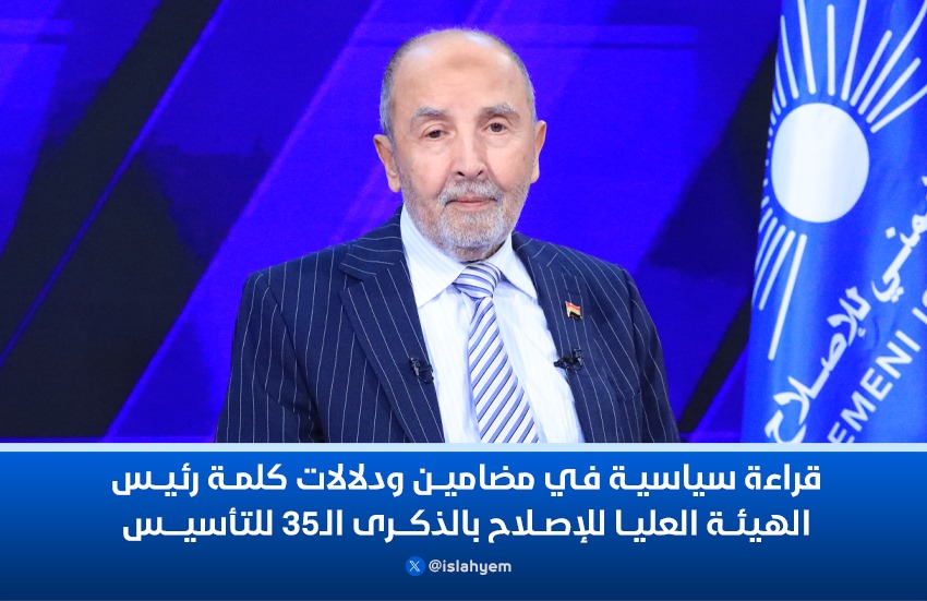 حمل خطاب رئيس الهيئة العليا للتجمع اليمني للإصلاح، بمناسبة ذكرى التأسيس الخامسة والثلاثين، مضامين ورسائل عديدة باتجاه الأطراف والمكونات في الداخل اليمني والخارج الإقليمي والدولي. لم يقتصر الخطاب على البروتوكولية الاعتيادية في الاحتفاء بمثل هذه المناسبة التي تهتم في العادة بإعادة التعريف بالحزب وتقديم إيضاحات وتأكيدات لمواقفه من القضايا المختلفة فحسب؛ بل تعدى الخطاب ذلك ليمثل خارطة موضوعية وشجاعة، يمكننا أن نضعها داخل ثلاثة إطارات متكاملة، شملت تقييم الذات، وامتدت منه إلى تشخيص المشهد الراهن، وانتقلت به إلى تقديم رؤية إستراتيجية للمستقبل. وفي جميع هذه الأطر لم يحمل الخطاب شعارات نظرية عاطفية؛ بل قدم تصورات واقعية موضوعية، وهذه الأطر الثلاثة هي:
