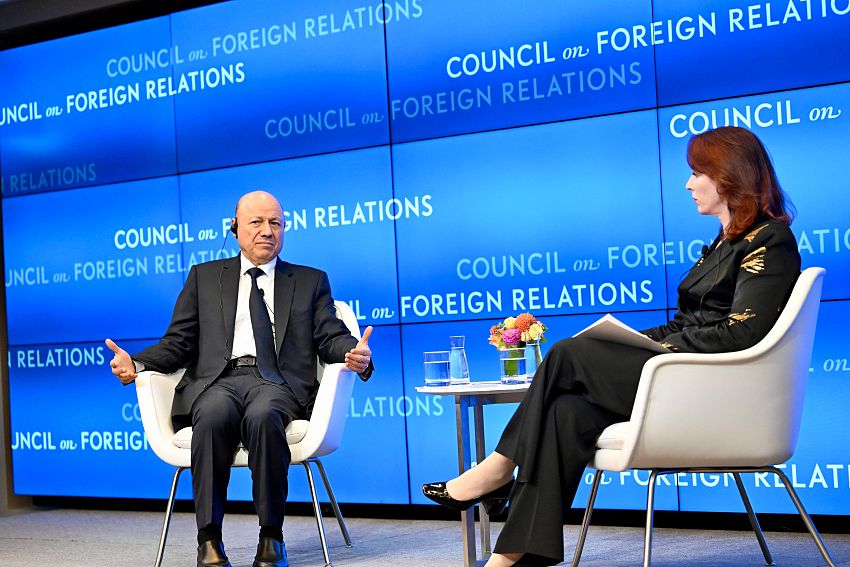 وقال فخامة الرئيس في جلسة حوارية لمجلس العلاقات الخارجية الاميركي بحضور عضو مجلس القيادة الدكتور عبدالله العليمي "إن المرحلة الراهنة تتطلب تغييراً جذرياً في النهج بالانتقال من "إدارة الصراع" إلى مرحلة " القوة من اجل السلام".
