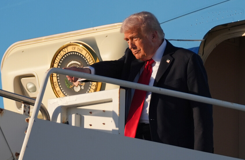 ووصل ترامب إلى مدينة شرم الشيخ للمشاركة في أعمال قمة شرم الشيخ للسلام، بعد زيارة إلى إسرائيل استمرت عدة ساعات، واستقبلت المقاتلات المصرية طائرة الرئيس الأمريكي منذ دخلوها للأجواء المصرية حتى لحظة هبوطها بمطار شرم الشيخ الدولي، وذلك ترحيبا بزيارة ترامب وتقديرا لدوره في وقف حرب غزة.