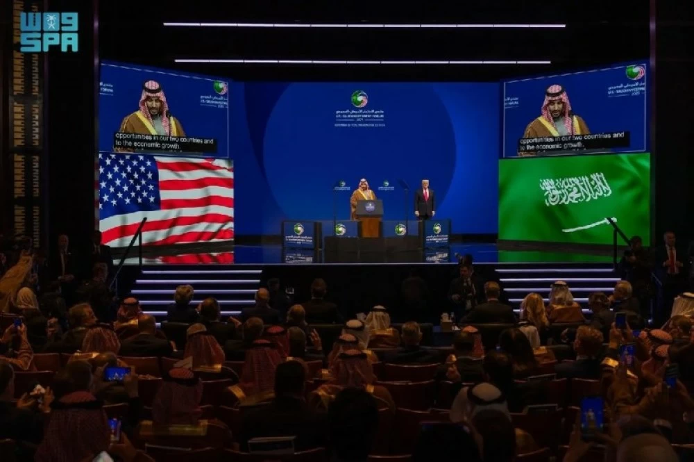 شارك ولي العهد رئيس مجلس الوزراء الأمير محمد بن سلمان، ورئيس الولايات المتحدة الأمريكية الرئيس دونالد ترمب، في أعمال منتدى الاستثمار السعودي الأمريكي المنعقد في مركز جون كينيدي بالعاصمة الأمريكية واشنطن.