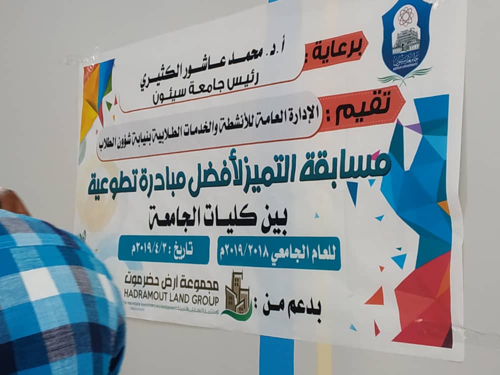قد حصلت مبادرة 《أمنح حياة بدمك 》 على المركز الاول فيما حصلت مبادرة 《 ردا للجميل 》 على المركز الثاني والمبادرتين قام بتنفيذها طلاب كلية العلوم الإدارة بجامعة سيئون. وفي الختام قام نائب رئيس الجامعة لشئون الطلاب الدكتور رياض منقوش والدكتور مكسيم معاون السباعي نائب عميد كلية العلوم الادارية و الدكتورة نجيبة معياد نائبة عميدة كلية البنات لشؤون الطلاب والدكتور سالم بامؤمن نائب عميد كلية التربية لشؤون الدراسات العليا والأستاذ مجدي سليمان مدير عام الأنشطة والخدمات الطلابية بالجامعة بتكريم المبادرات الحاصلة على المراكز الاولى .