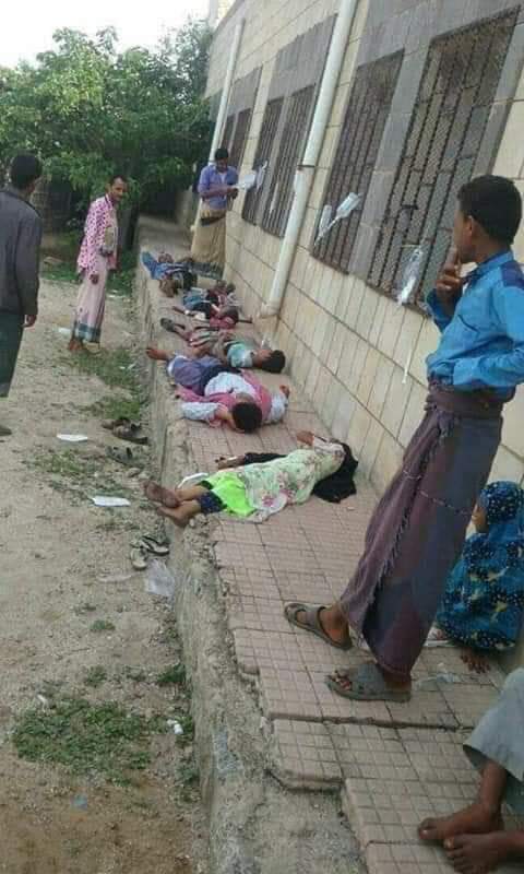 وقال الناشطين ان الصور من أحد مستشفيات مدينة الحديدة وهي لمرضى مصابين الكوليرا لم يستطع المستشفى استيعابهم.