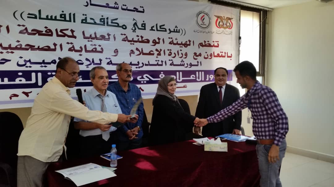 اختتمت بالعاصمة المؤقتة عدن ،اليوم ، الدورة التدريبية للاعلاميين حول دور الاعلام في مكافحة الفساد تحت شعار (شركاء في مكافحة الفساد) والتي تنظمها الهيئة الوطنية لمكافحة الفساد بالتعاون مع وزارة الاعلام ونقابة الصحفيين اليمنيين .