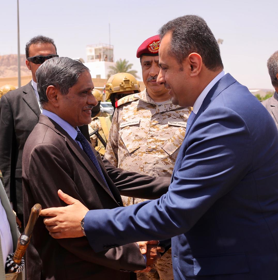 وكان في استقبال رئيس الوزراء لدى وصوله إلى مطار سيئون الدولي، محافظ حضرموت قائد المنطقة العسكرية الثانية اللواء فرج البحسني ورئيس هيئة الاركان العامة الفريق الركن عبدالله النخعي، وقائد المنطقة العسكرية الأولى اللواء الركن صالح طيمس ،ووزير الاوقاف والارشاد الدكتور احمد عطية وعدد من قيادات السلطة المحلية والامنية بمحافظة حضرموت.