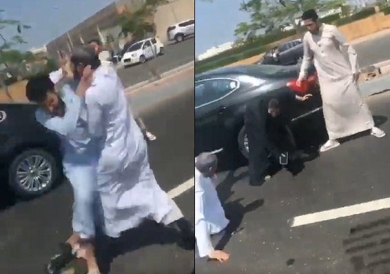 شاهد بالصورة بدون رحمة شباب سعوديين يعتدون على إمرأة مسنة وسط الشارع وهذه كانت ردود فعل المارة