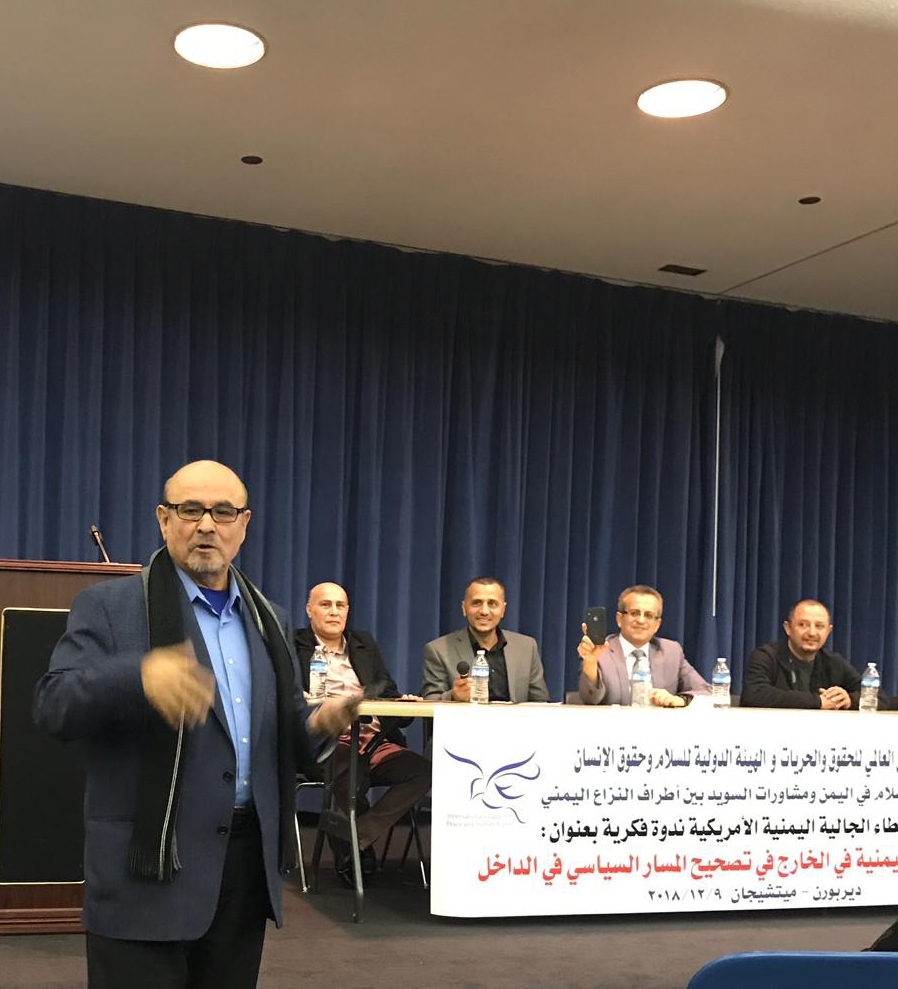 متشجن (10 ديسمبر 2018) – عقدت في مكتبة (هينري فورد) بمدينة ديربورن يوم أمس ندوة بعنوان "دور الجالية اليمنية في تصويب المسار السياسي في اليمن" نظمتها قيادات اجتماعية وناشطين في الجالية اليمنية في ولاية متشجن الأمريكية برعاية الهيئة الدولية للسلام وحقوق الإنسان بجنيف (ILPHR)، والمجلس العالمي للحقوق والحريات (ICRF).