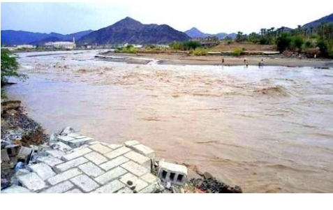 وبحسب المصادر, أن تدفق السيول في وادي عثرب امبسطي أدى إلى انقطاع الخط الدولي الرابط بين عدن وحضرموت.