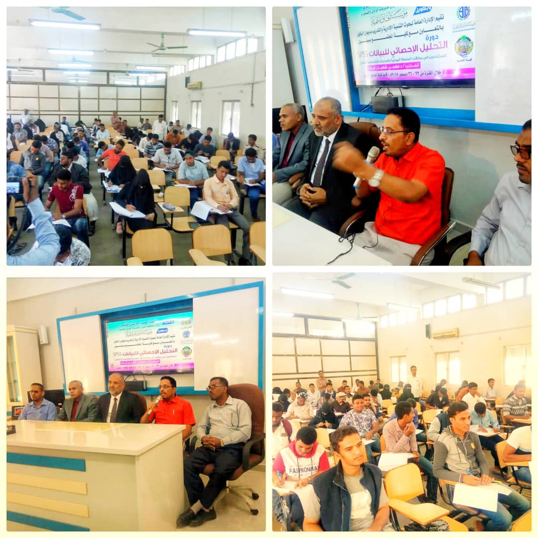 برعاية السلطه المحلية بوادي وصحراء حضرموت وبحضور وكيل محافظة حضرموت لشوون مديريات الوادي والصحراء الاستاذ / عصام حبريش الكثيري والاستاذ/ أيمن بن عبيدالله المدير التنفيذي لموسسة آفاق للتنميه والمهندس/ عمر مبروك باشداده مدير عام الاداره العامه للبحوث التنميه الاداريه والتدريب بديوان وكيل محافظة حضرموت الوادي والصحراء بدأت صباح أمس الأحد بقاعة كلية التربية جامعة سيئون ومن ثم الانتقال لمعمل الحاسبات بكلية المجتمع تزامنا ذلك مع تدشين الأمتحانات الفصلية بكلية المجتمع *"دورة التحليل الاحصائي للبيانات بأستخدام برنامج spss"* والذي تنفذها الاداره العامه للبحوث التنميه الادارية والتدريب بديوان وكيل محافظة حضرموت الوادي والصحراء وتمويل من مؤسسة آفاق للتنميه وبمشاركة عدد25 متدربا من مختلف مكاتب السلطة المحلية يتلقون فيها وعلى مدى اربعة ايام من قبل المدرب الدكتور /فهمي شعبان فراراه جمله من المعارف العلميه والمهارات وكيفية التعامل مع التحليل الاحصائي للبيانات باستخدام برنامج spss,,